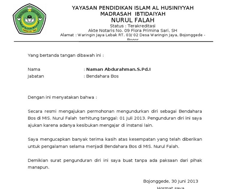 Cek 12+ Contoh Surat Pengunduran Diri Bendahara Bos Sekolah  Contoh